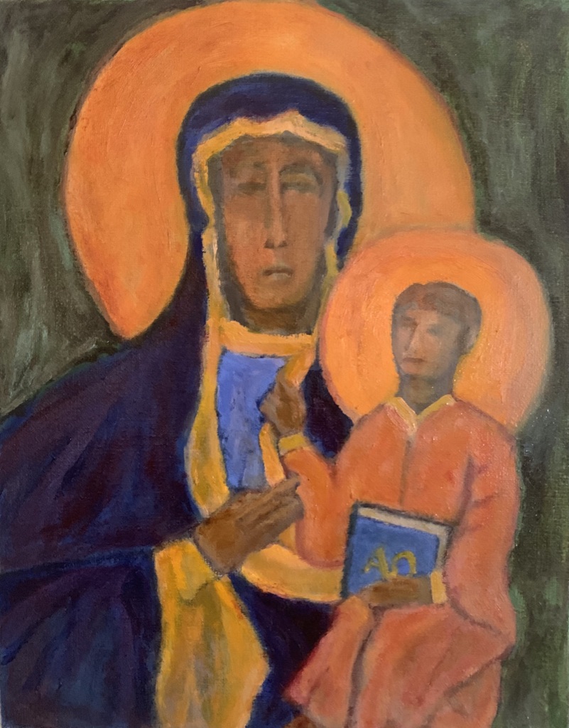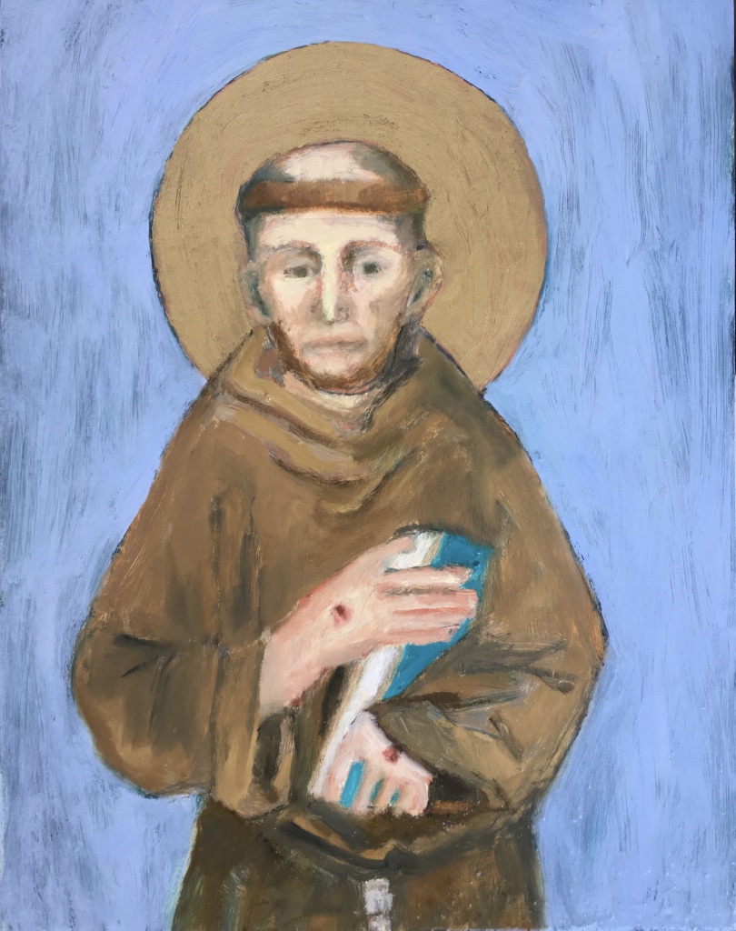 Sebastian, oil on canvas,24×36″St. Francis, oil on panel,5×7″Of the Angry Eyes, oil on canvas, 30×30″Ein Sof, Encaustic on panel, 3×5″Lady of Consolation, oil on panel, 12×14