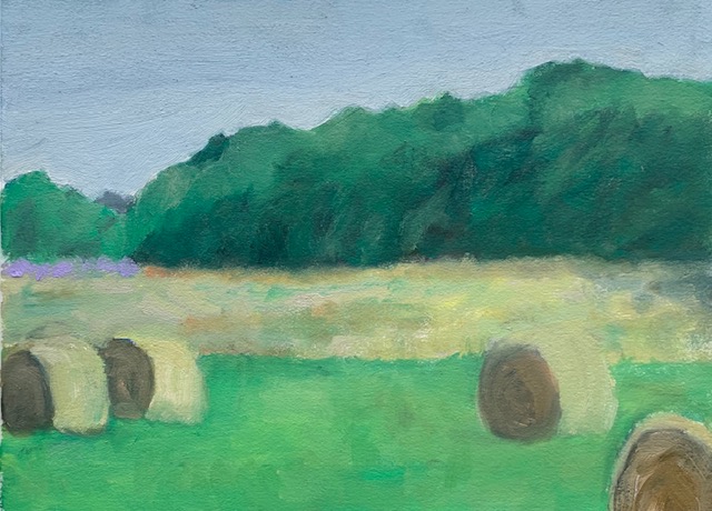 Haystacks, oil on gessoed paper, 8.5×11″